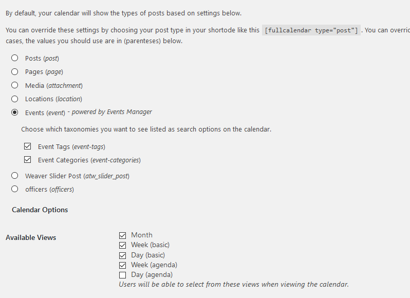 - General :- Full calendar options Set both override to yes